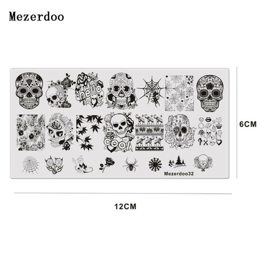 1Pcs Spider Web Nail Stamping Plate Skull Rose Pattern Rectangle Nail Art Stamp Stamping Template Image Plate Stencil Mezerdoo32